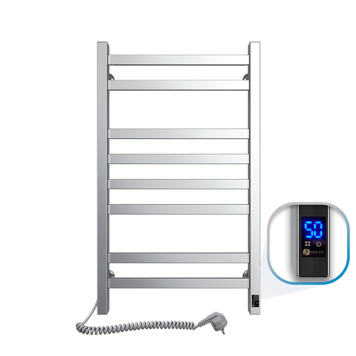 Электрический полотенцесушитель Navin Авангард 480×800 Sensor — современное устройство для эффективной сушки полотенец и поддержания комфортного микроклимата в ванной комнате. Благодаря конструкции типа «лесенка» можно удобно размещать несколько полотенец одновременно.