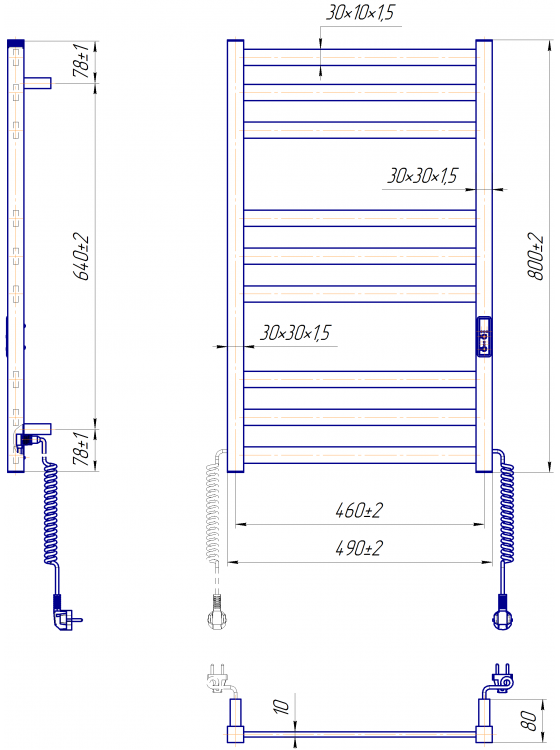Рушникосушка виготовлена з високоміцної нержавіючої сталі, яка відзначається корозійною стійкістю та довговічністю. Система робочих режимів з таймером-регулятором дозволяє налаштувати оптимальний рівень нагріву для ефективної сушки рушників і додаткового обігріву. Інструментально зручний розмір 800×490 мм (іноді представлено також варіант 800×530 мм) робить цю модель універсальною для ванних кімнат стандартних розмірів. Прилад працює незалежно від центральної системи опалення, що дозволяє використовувати його в будь-який сезон.