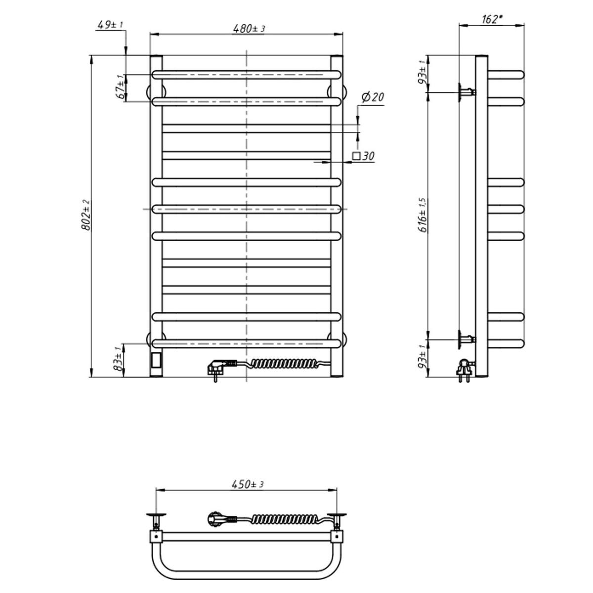 Завдяки розмірам 480×800 мм модель має достатню площу для сушіння рушників та органічно вписується у більшість сучасних інтер’єрів.