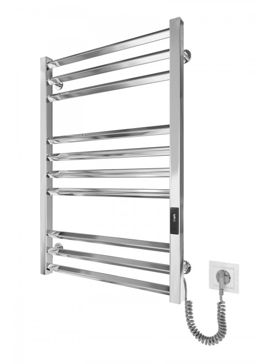 Конструкція має 10 перекладин, виготовлених із нержавіючої сталі, що забезпечує міцність та тривалу експлуатацію без втрати зовнішнього вигляду. Завдяки високому класу захисту IP44 рушникосушка є безпечною для застосування у вологих приміщеннях, таких як ванна або санвузол.